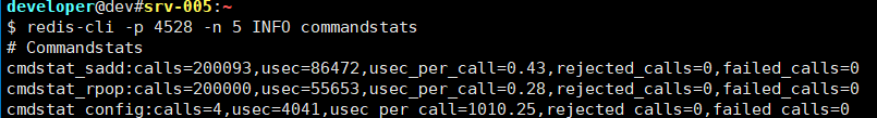 redis-cli -h localhost -p 4528 -n 5 INFO commandstats # 统计redis实例从启动到现在的命令耗时