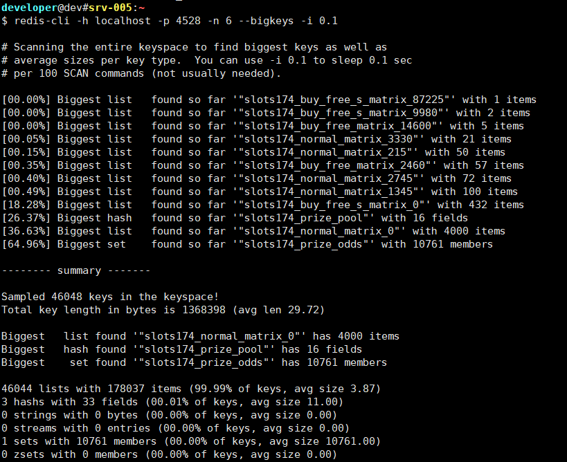 redis-cli -h localhost -p 4528 -n 6 --bigkeys -i 0.1